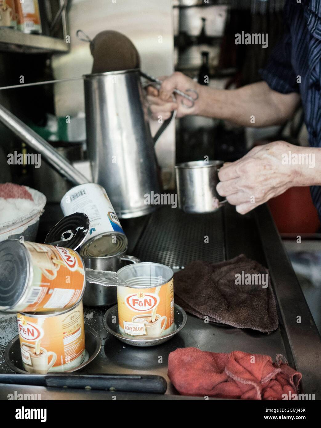 Making Coffee Kopi The Singapore Way In A Hawker Center Stock Photo Alamy